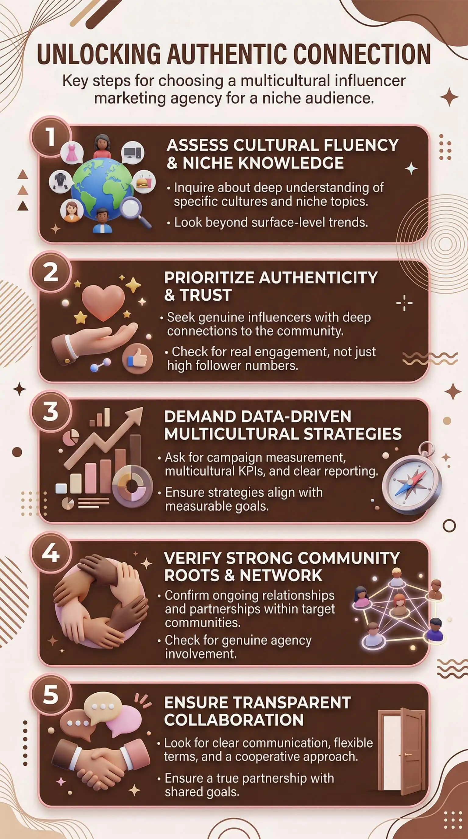 So before you evaluate a single campaign concept or influencer list, evaluate the agency. Ask who on their team is from the community you’re trying to reach. Ask how their influencer relationships were actually built. Ask for a case study from a business your size, serving a community like yours.